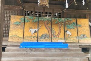 引き続き、状態の良い書き割りを出していくと同じ鶴の絵が何枚も出てきたため、本殿に運び順番をそろえてみることにした。推測通り6枚で一つの絵が完成する。